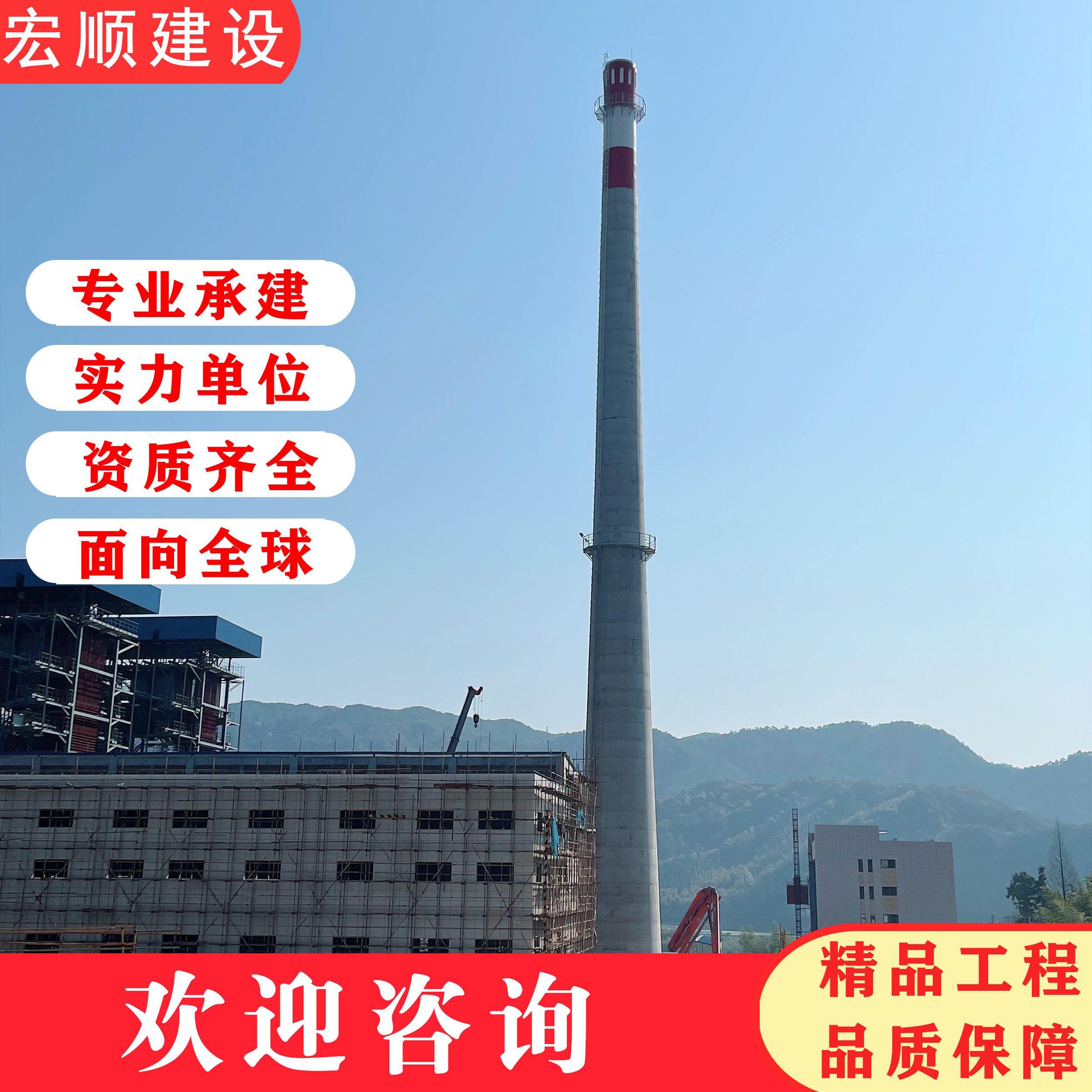 煙筒防腐公司(鋼煙囪防腐)2023年的筒身粘貼輕質玻化陶瓷磚